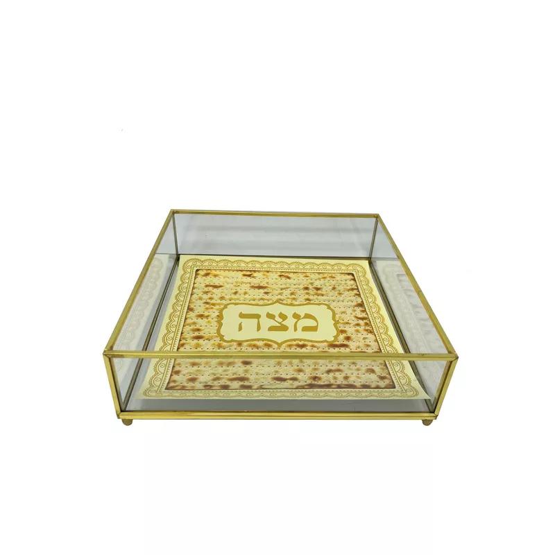 צלחת מצות מזכוכית מסגרת זהב