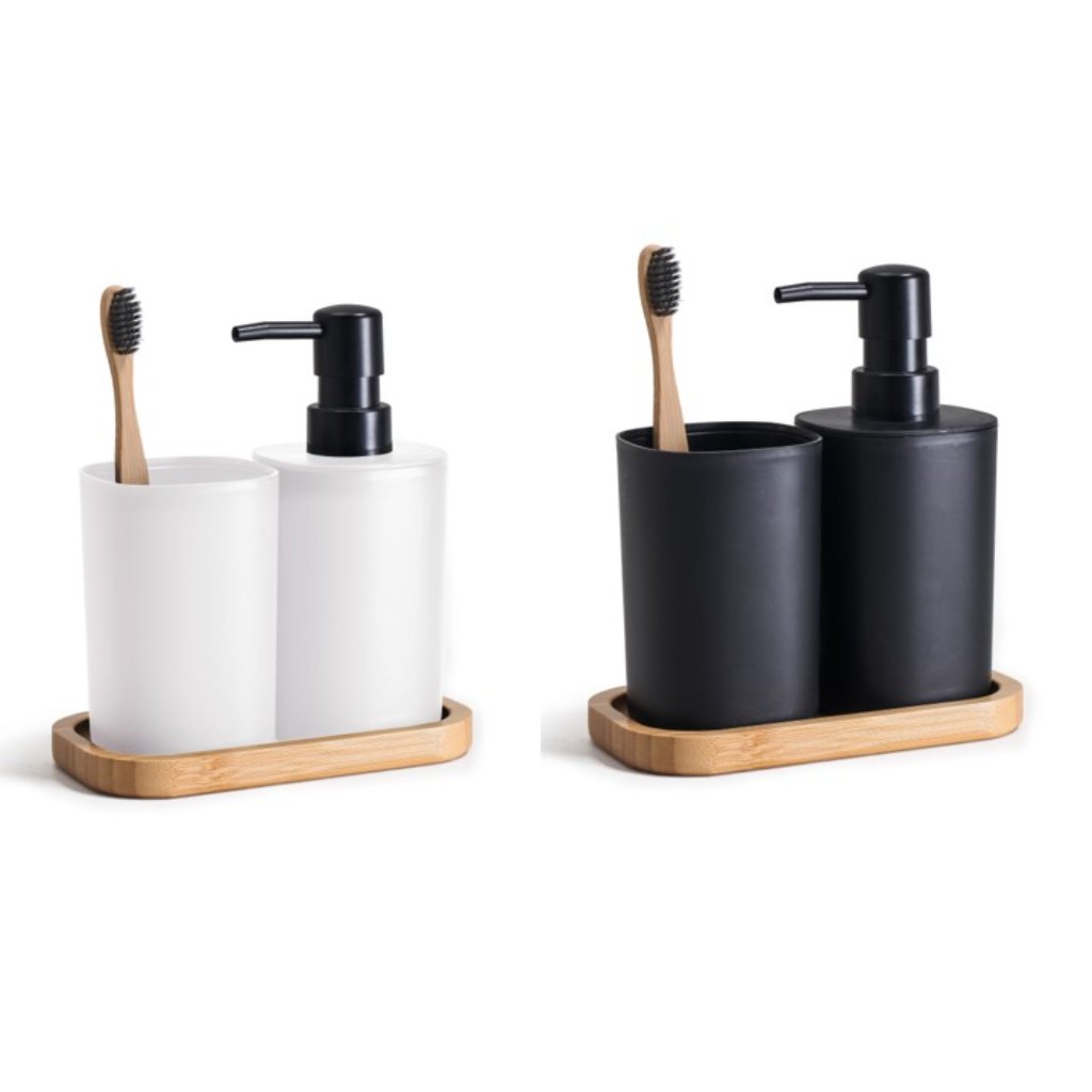 סט אמבט 3 חלקים פלסטיק עם מגש במבו