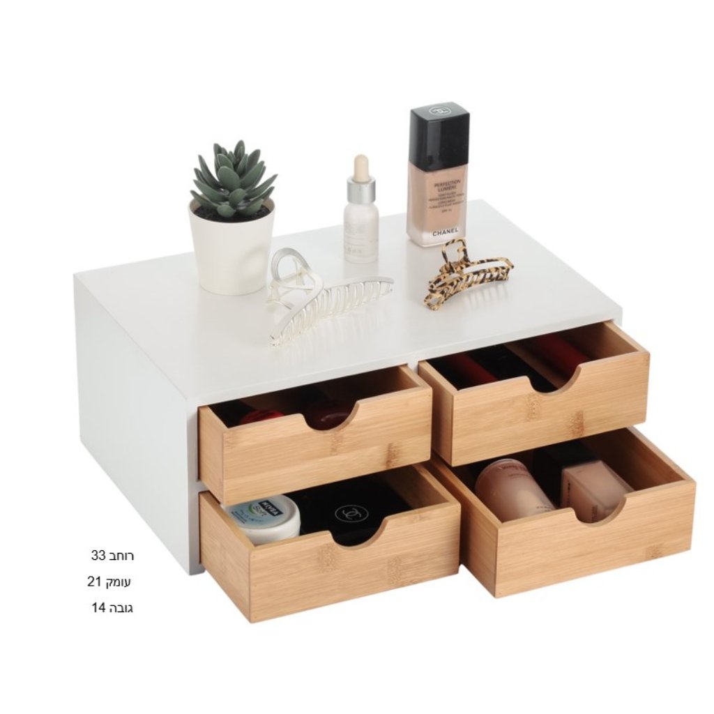 ארגונית איפור לבנה במבו 4 מגירות