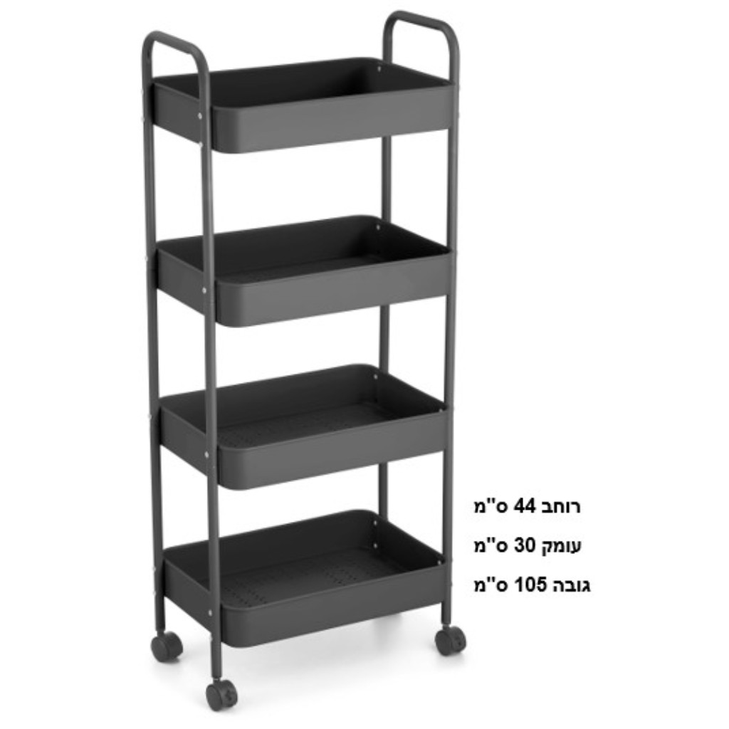 עגלת שירות מתכת 4 קומות שחורה