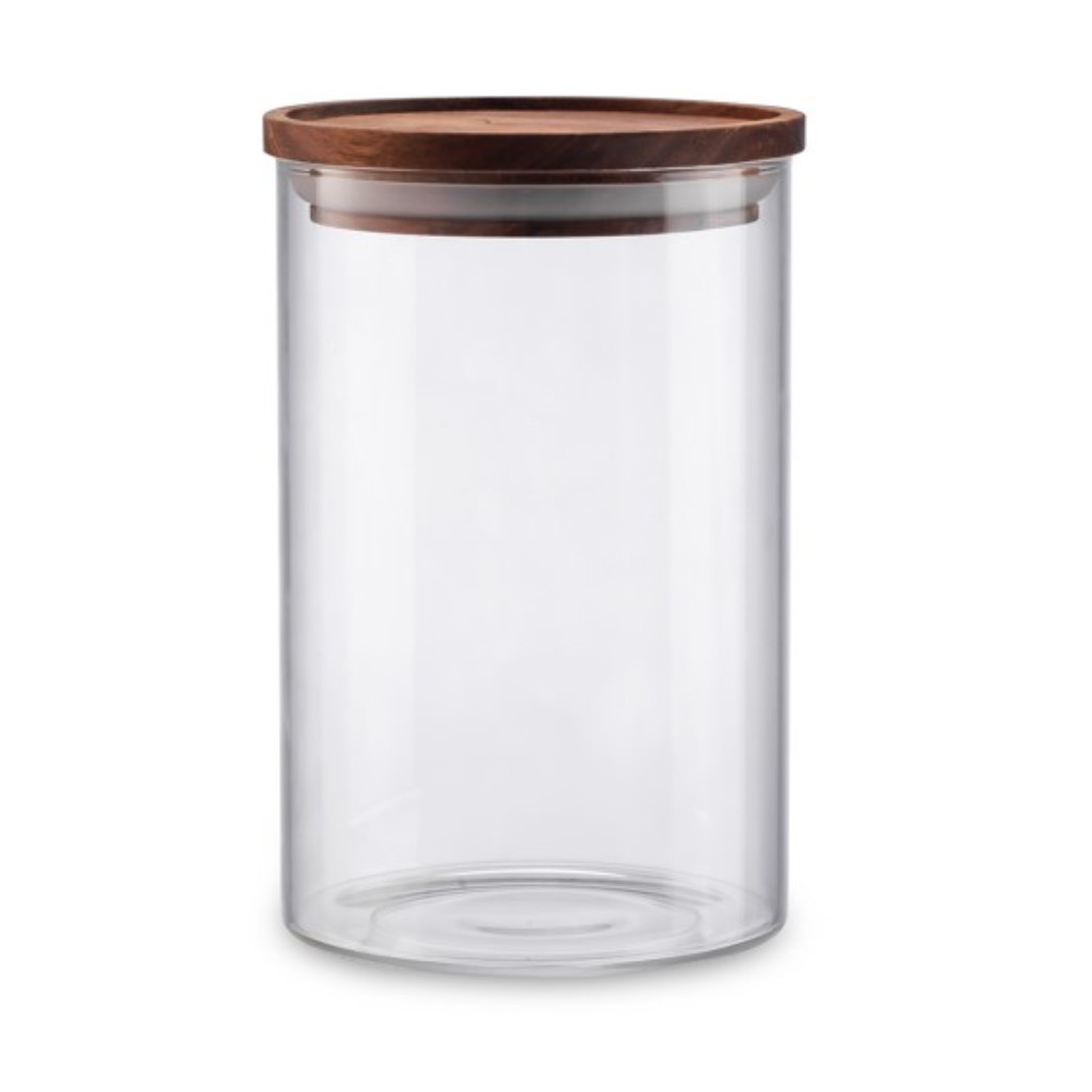 צנצנת זכוכית דקה עם מכסה עץ 1000 מ"ל