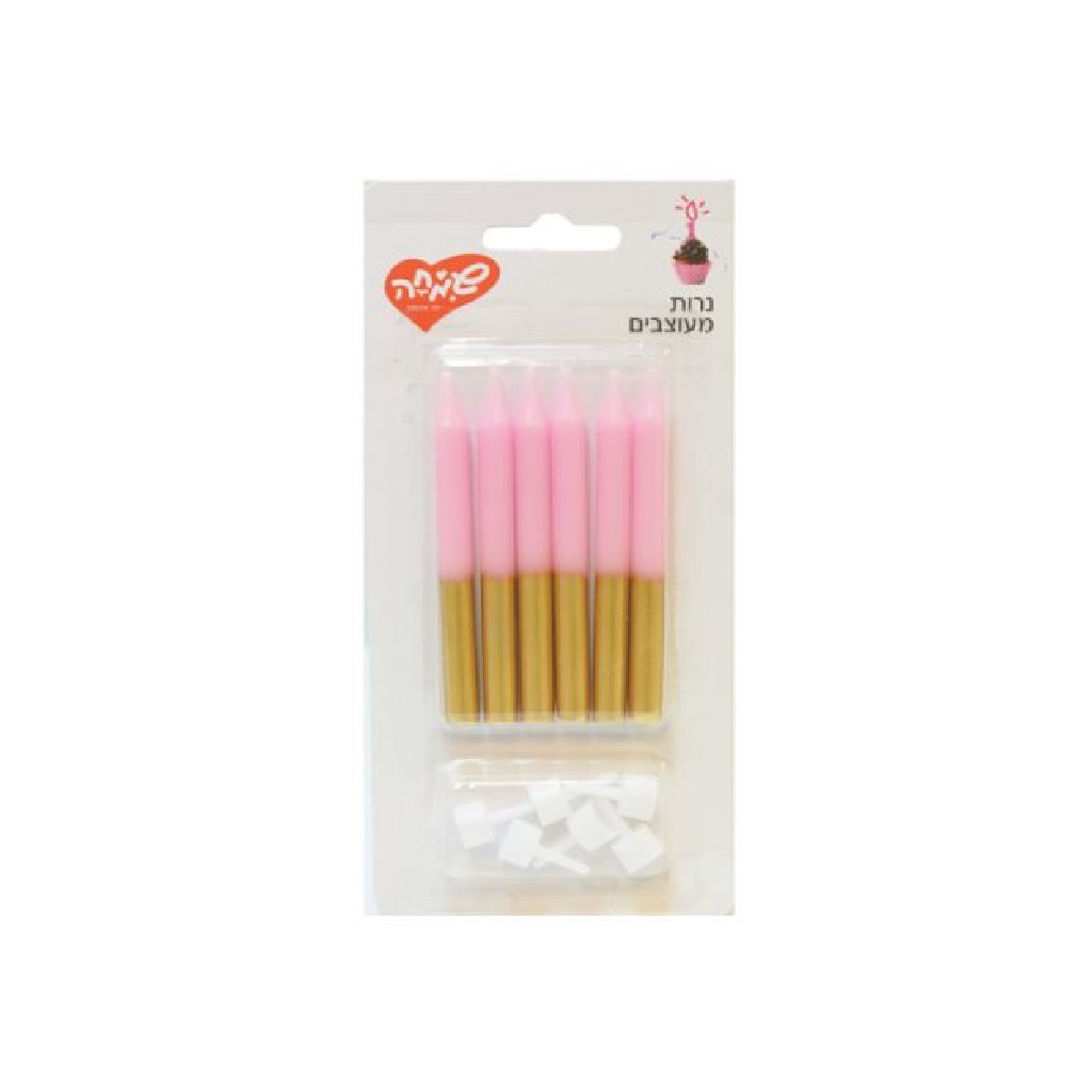 סט 6 נרות בצבע ורוד עם גליטר זהב