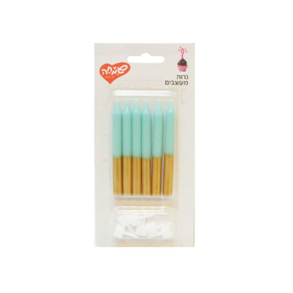 סט 6 נרות בצבע תכלת עם גליטר זהב