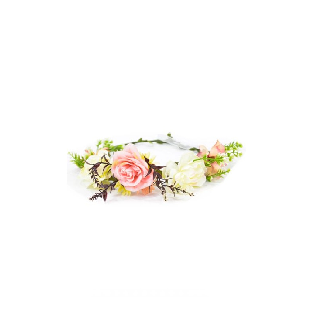 זר פרחים לראש ורוד לבן