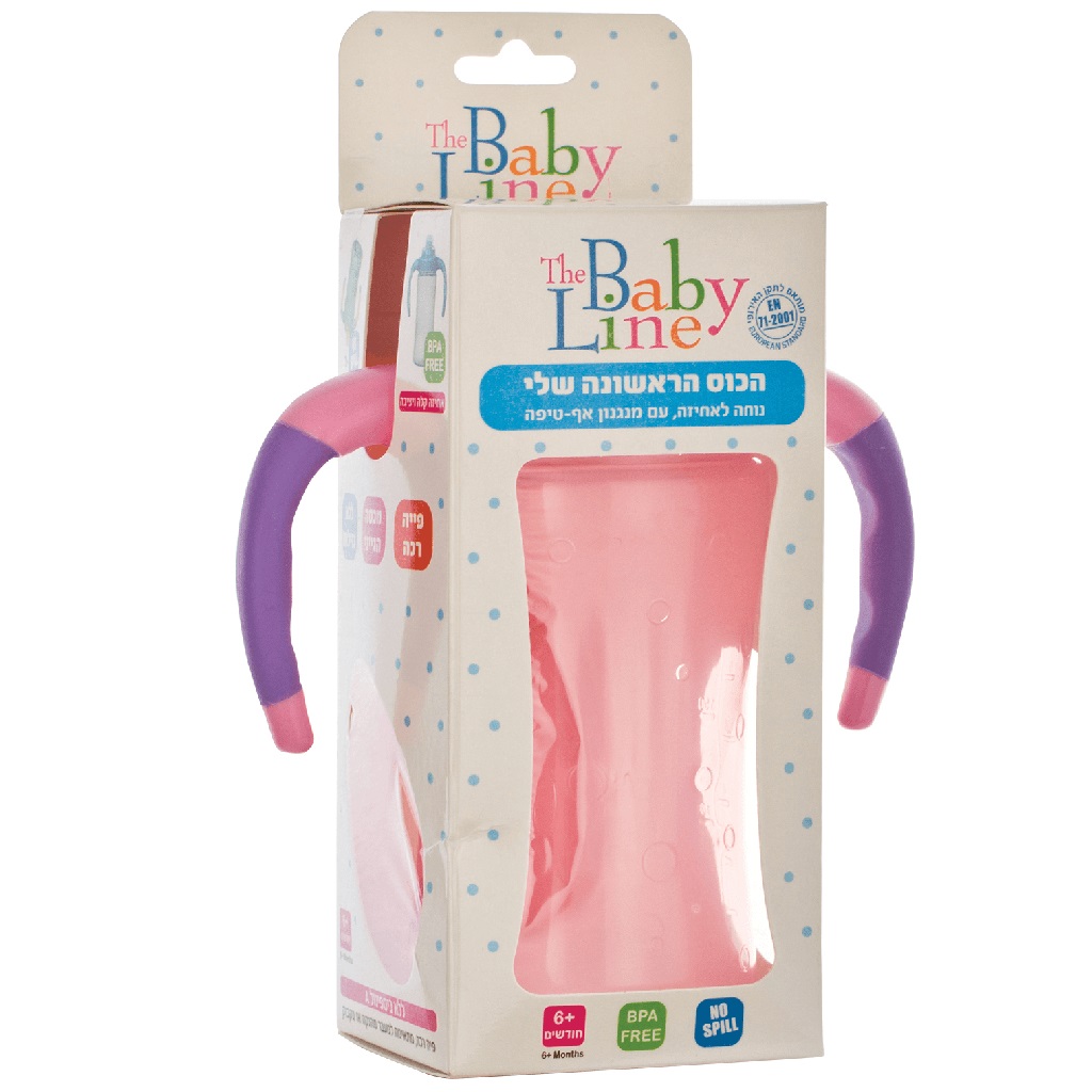 כוס שתייה ורודה+ידיות 6 חודשים בייבי ליין