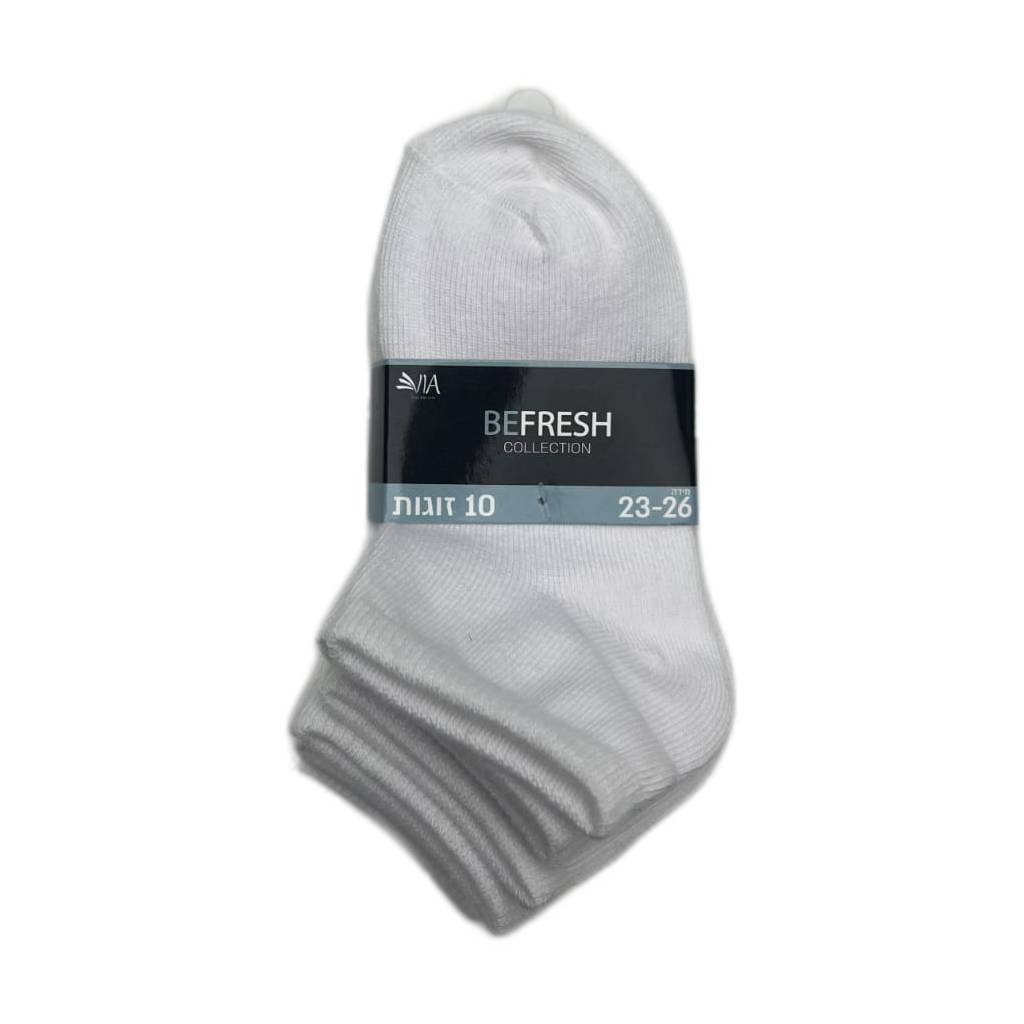 סט 10 זוגות גרביים קצרות לבנות פרש 23-26