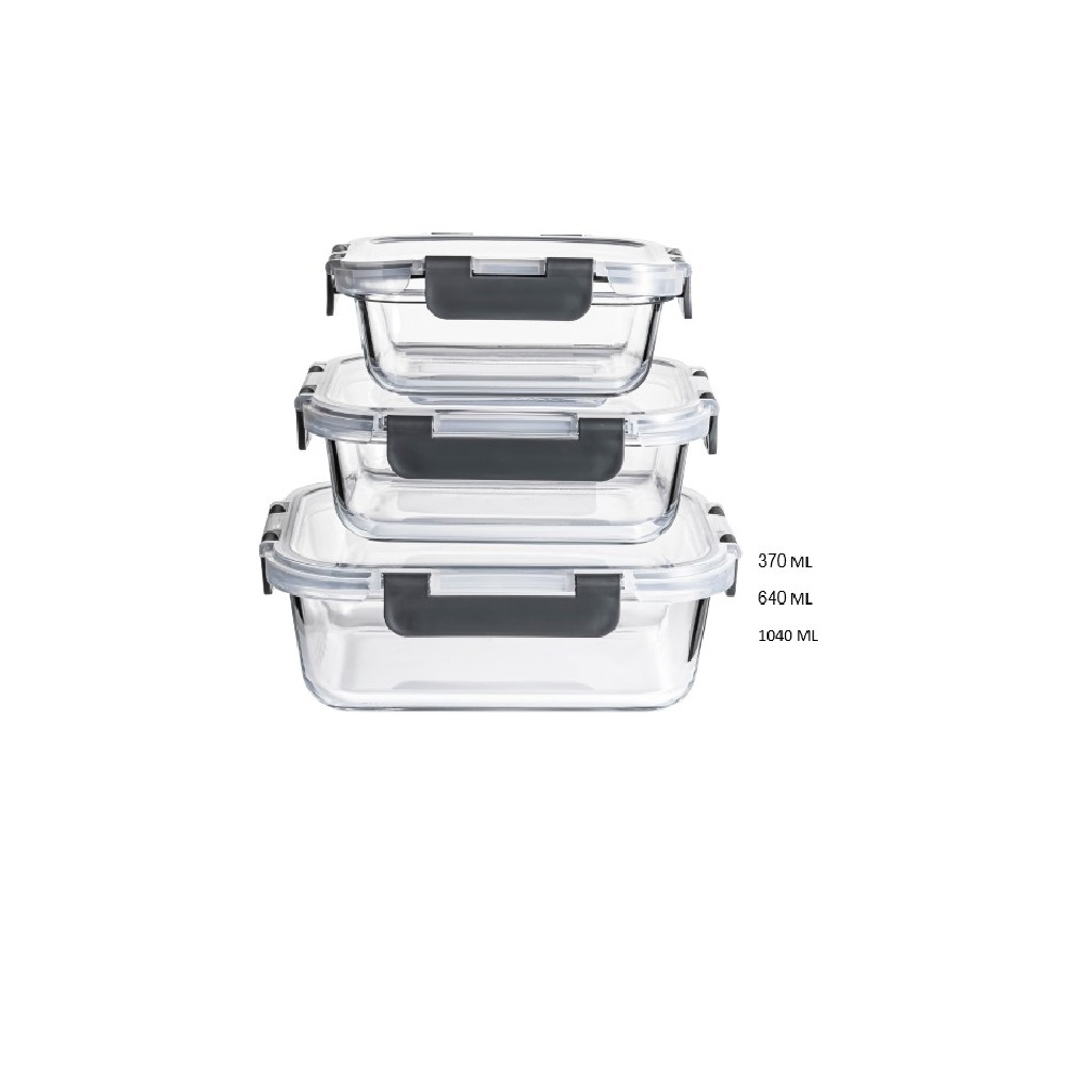 סט 3 קופסאות זכוכית מלבניות