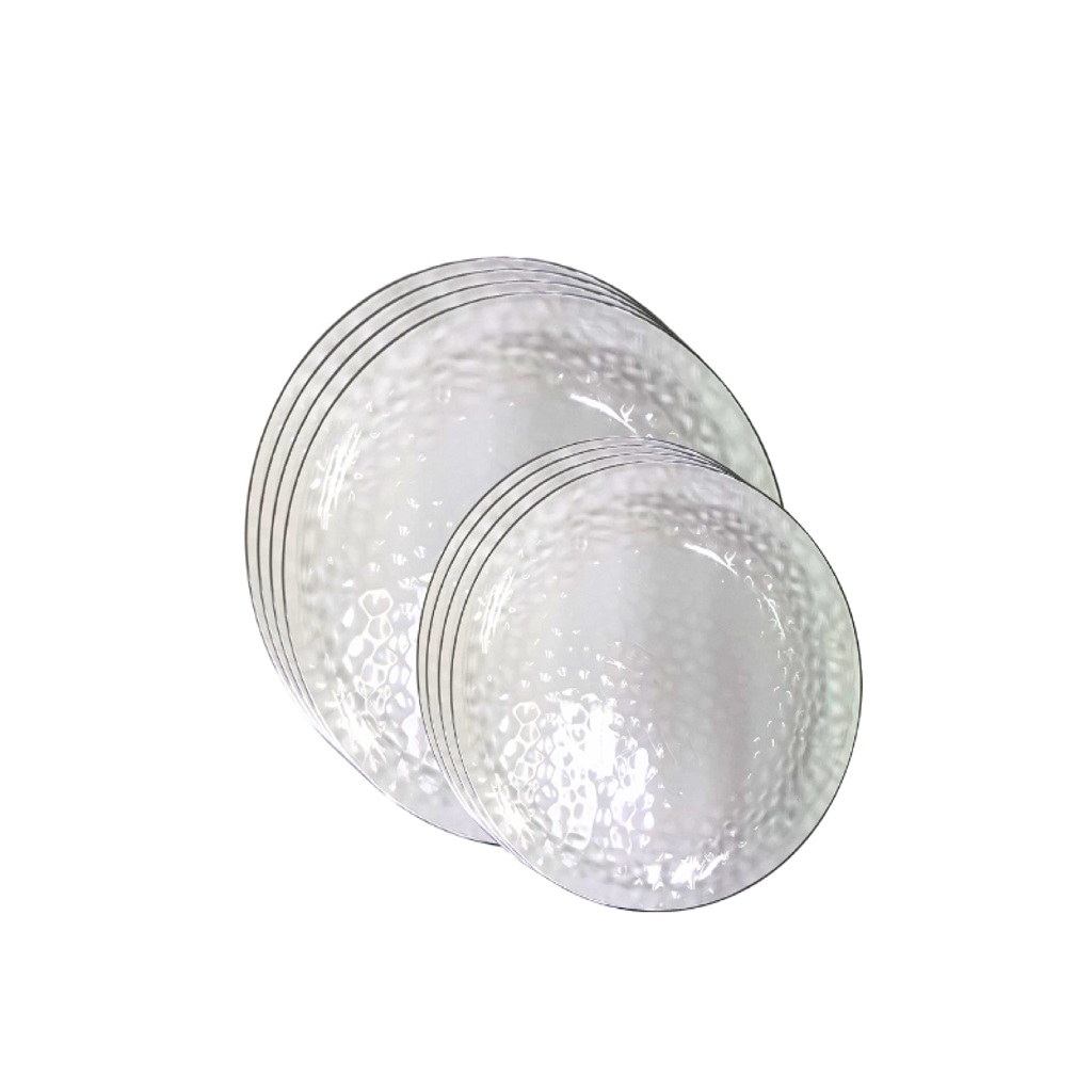 סט 16 צלחות בועות שקוף פס כסף