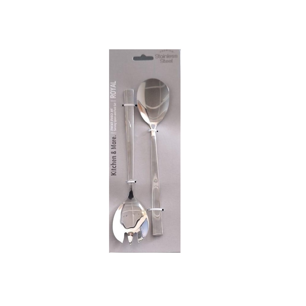 הסט מכיל כף חלקנ להגשה, וכף משוננת להגשה