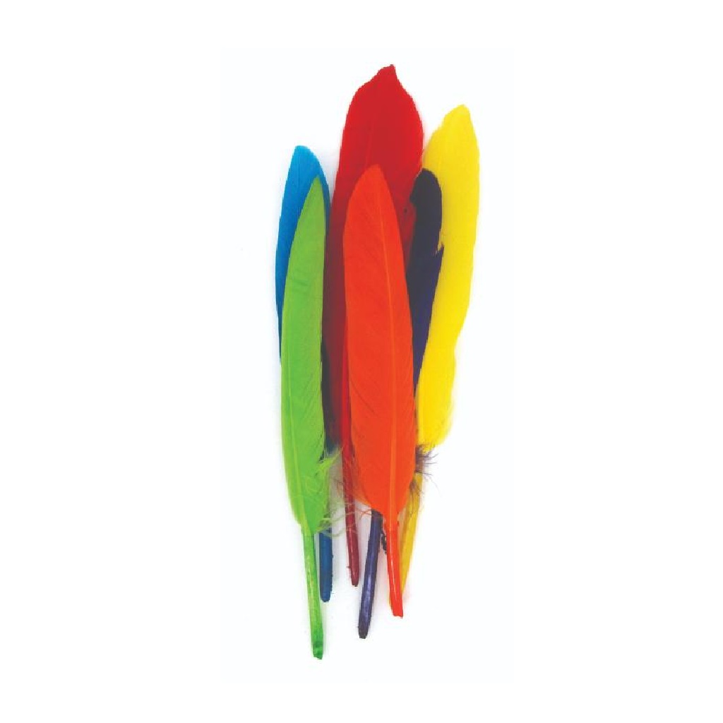 סט נוצות במגוון צבעים בוהקים, ליצירה ותפירה, מושלמות לשילוב בתחפושות ותלבושות ססגוניים.
