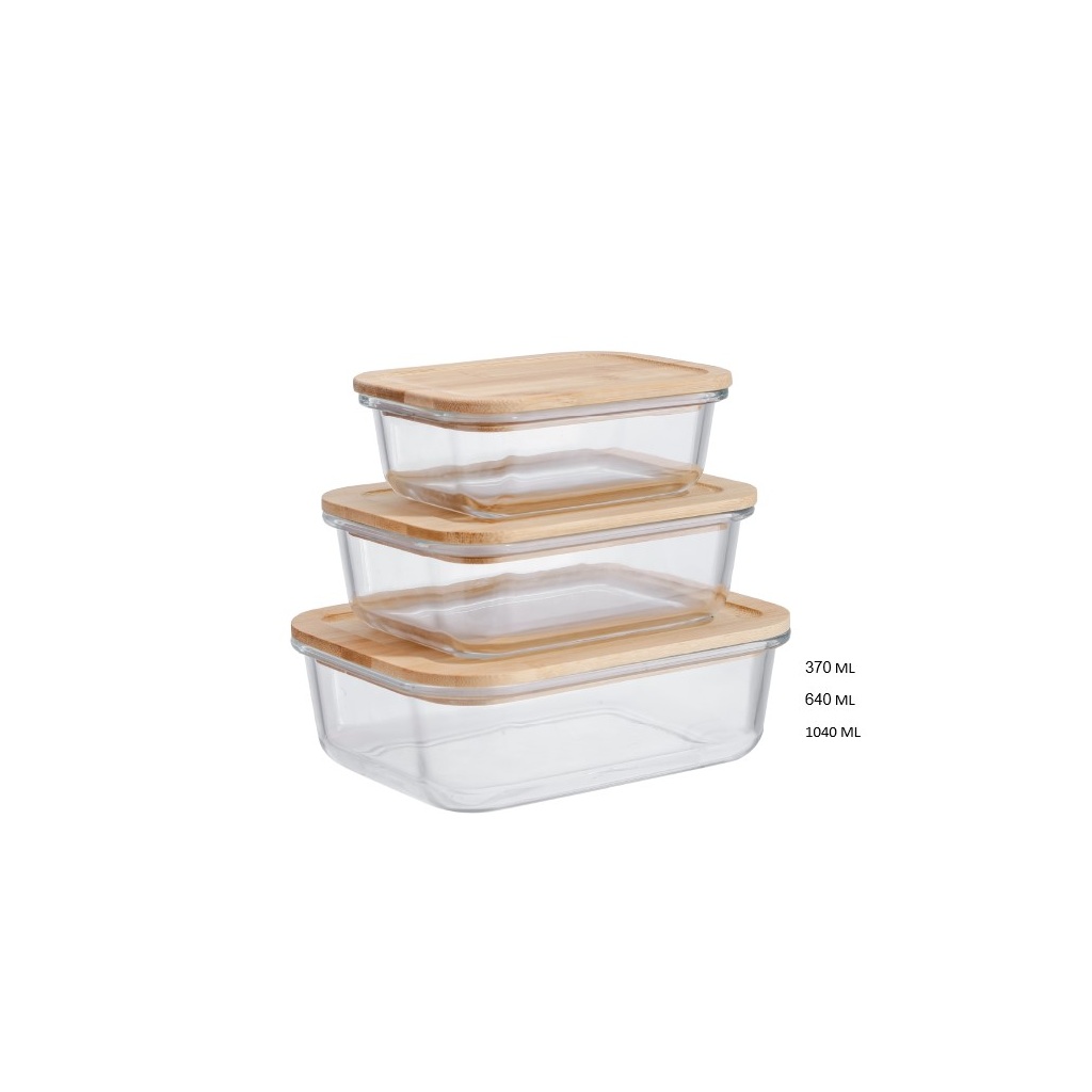 סט 3 קופסאות זכוכית עם מכסה BAMBOO, בתוספת פס ואקום לסגירה איכותית ולשמירה על הטריות, הקופסאות מתאימות למזון חם וקר, פירות, ירקות, מוצרי עזר ועוד…