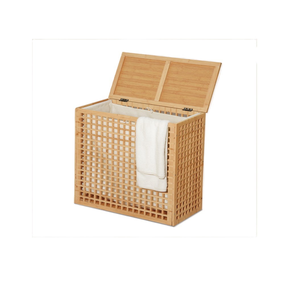 צבע: עץ במבו בהיר בשילוב בד ארוג איכותי בצבע לבן, הבד רחיץ וניתן להוצאה בקלות ובנוחות, מתאים למגוון עיצובים וסגנונות חדרי כביסה ורחצה .