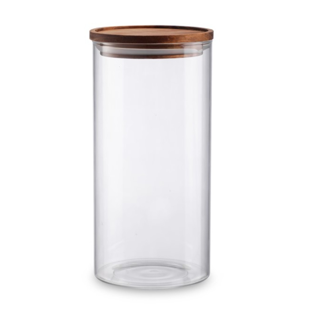 צנצנת זכוכית דקה עם מכסה עץ 1300 מ"ל